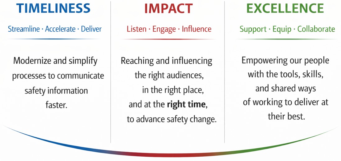 - shape understanding and prompt action by evolving how safety information and recommendations are presented to better align with audience behaviors, incentives, and decision-making needs.