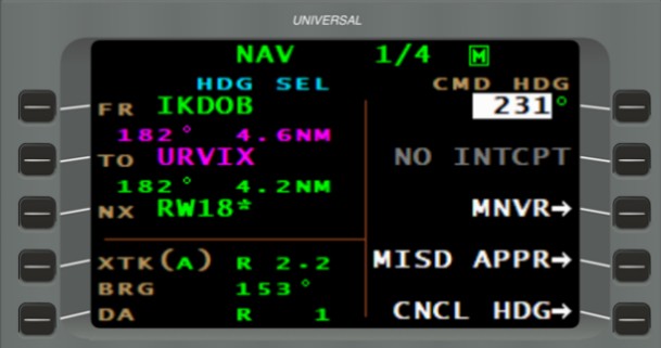 Then, as the flight crew flew toward final approach waypoint URVIX, given all the information displayed on navigation page NAV 1/4 (Figure 18), the flight crew did not notice that the FMS was still in HDG SEL mode and that NO INTCPT was displayed in grey. Consequently, the flight crew did not realize that the final approach path would not be intercepted once the autopilot NAV mode was selected. The flight crew members were not expecting the aircraft to turn right on the heading of 231° entered using the CMD HDG function, and deviate from the final approach path.
