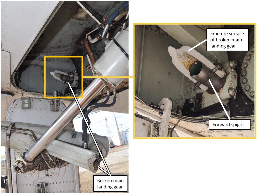 Each MLG unit is attached to the wing by half cap bearing housings mounted to the spigots through the spigot housing. During the landing of the occurrence flight, the spigot housing of the left MLG unit failed, resulting in the collapse of this MLG unit (figures 2, 3, and 4).
