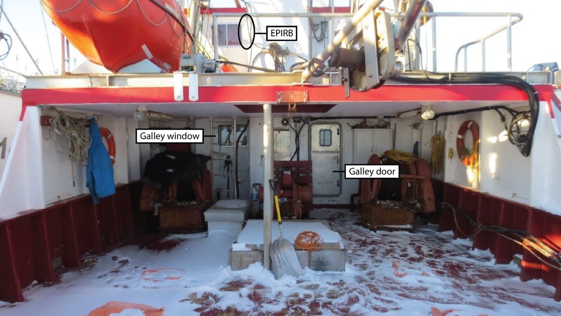 At some point during this period, the vessel’s rolling motion increased and unsecured items fell from shelves and other surfaces throughout the vessel, waking up the off-duty crew members and the observer. Water could be heard splashing below deck and crew members started to yell that the vessel was taking on water. The vessel was listing to port and sinking by the stern. Several actions occurred in succession as water flooded the accommodation space through the galley window and reached the wheelhouse: