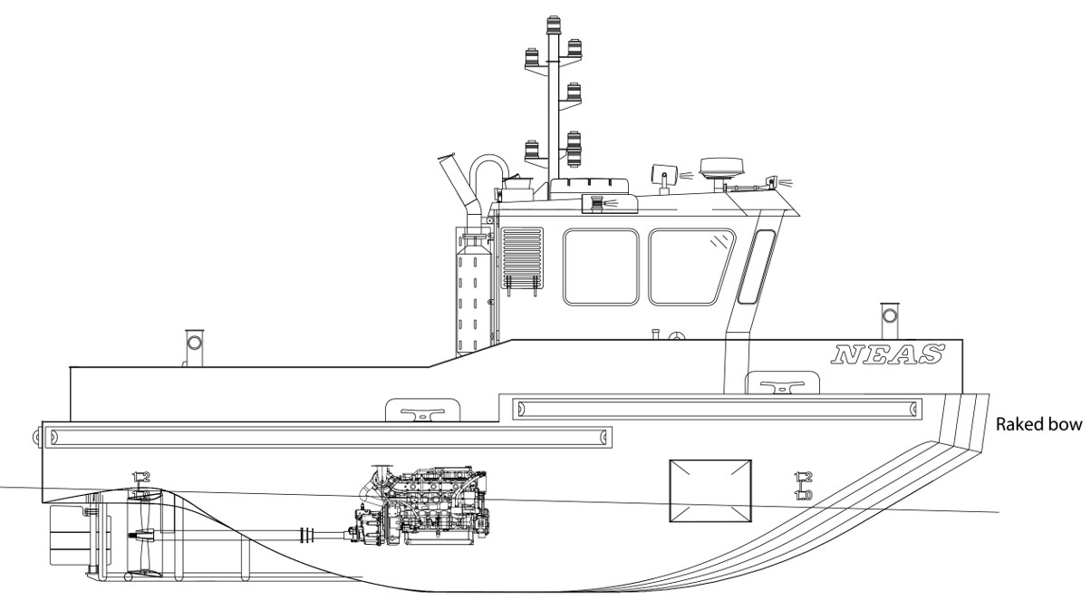 The Qimmiq is 1 of 12 tugs operated by NEAS Inc. that were built specifically for cargo transshipment operations in the Canadian Arctic. The tug is of steel construction and has a raked bow (Figure 2). The tug carries navigation and safety equipment, including a gaff, a very high frequency (VHF) radiotelephone, and an ultra high frequency (UHF) radiotelephone. The tug also has a stern bollard with a quick-release towing hook.
