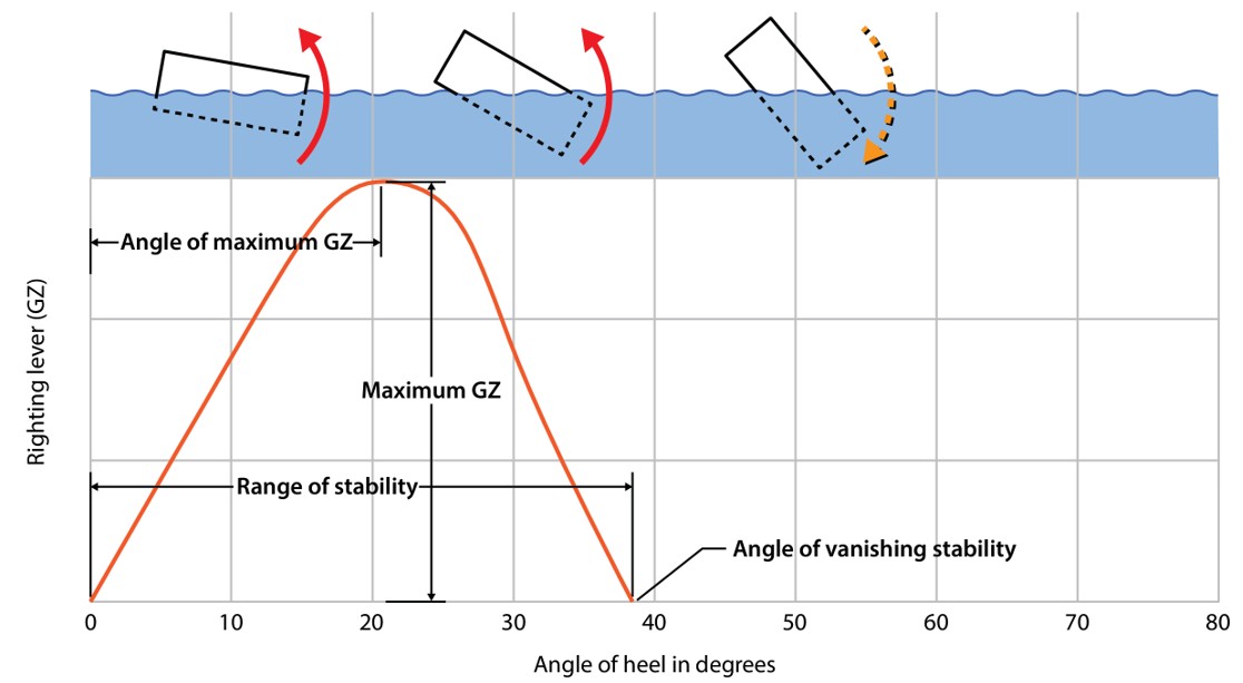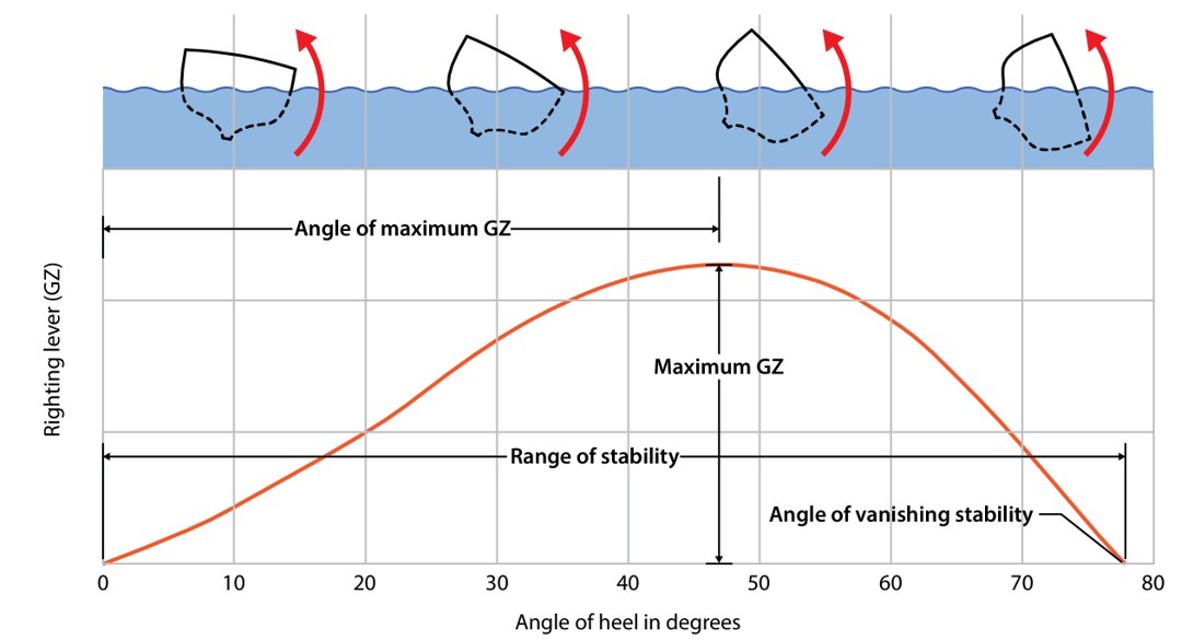 Vessels with relatively wide hulls and flat bottoms, such as barges, typically have a higher initial GM and a steep righting lever (GZ) curve (peaks at smaller angles), and the range of stability is much less than a traditionally shaped vessel. It is therefore important to ensure that the stability characteristics and loading limits are established and that the cargo crew are familiar with them.