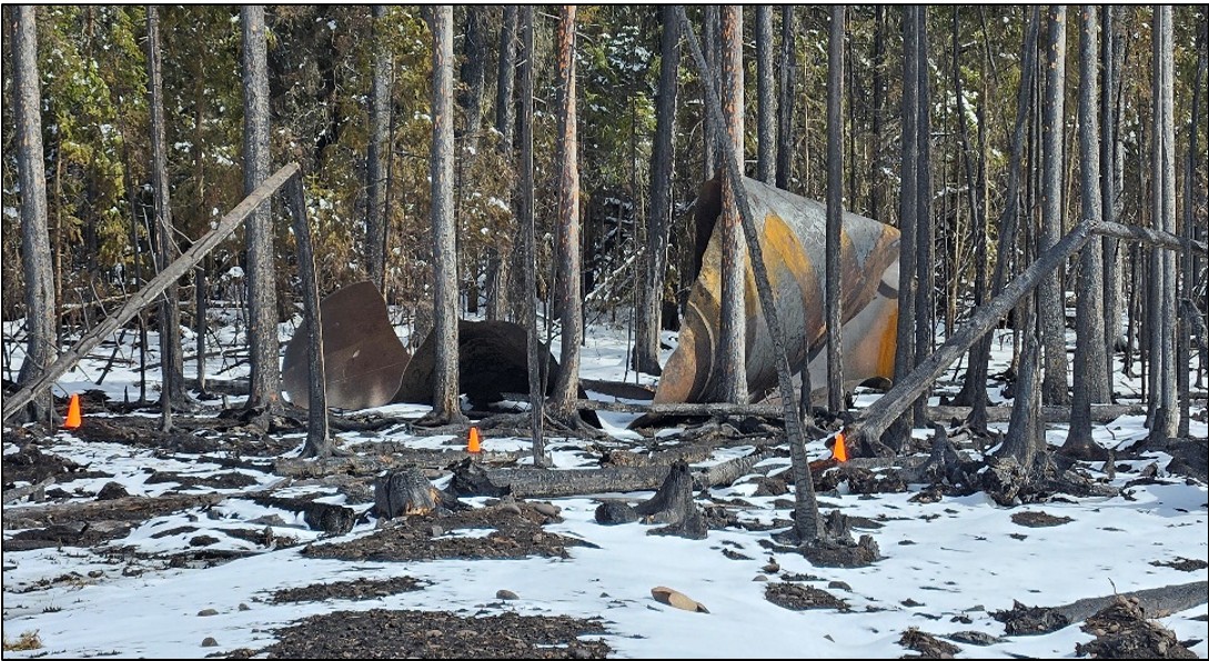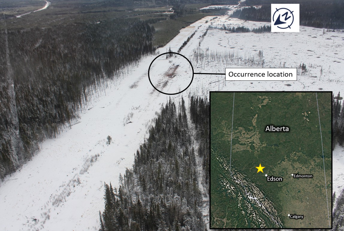 The occurrence location is surrounded by Crown land for a radius greater than 5 km. There was a work camp building at the Emerson Creek compressor station (located 2.5 km north west of the occurrence site) that had been unoccupied since 01 April 2024 and was in the process of being disassembled at the time of the occurrence. There are no dwellings within a 2 km radius of the occurrence location.