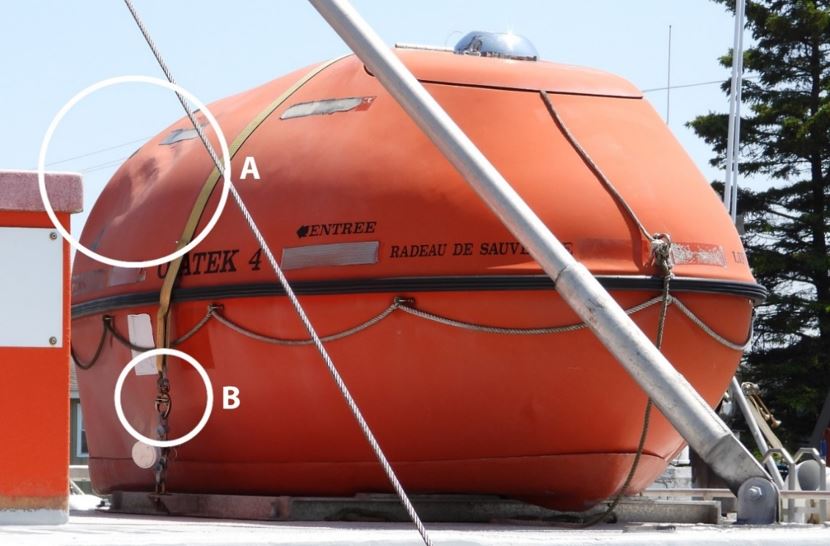 The TSB has observed fishing vessels of different types and in different locations where the installation of the rigid life raft appears to deviate from the manufacturer’s instructions. Such installations may lead to difficulties releasing, launching, or boarding the life raft in an emergency.