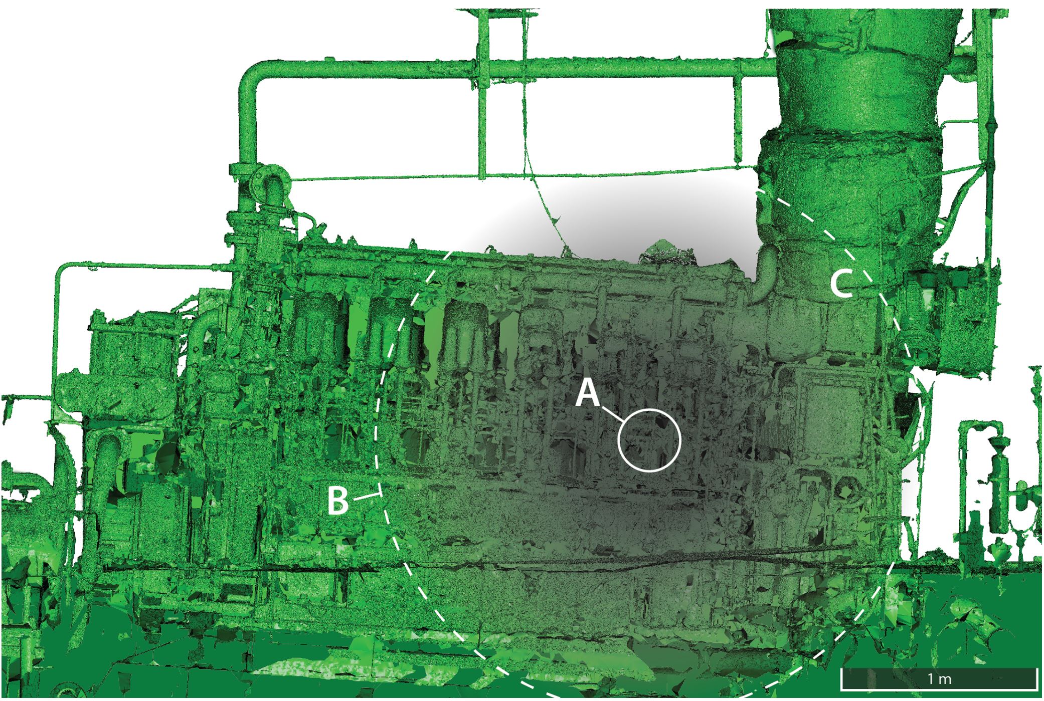 La salle des machines principales, la salle de commande des machines (SCM), la salle des machines auxiliaires, un atelier et une salle commune de l’équipage, ainsi que les réservoirs de carburant, les réservoirs d’eau et d’autres compartiments, se trouvaient sous le pont principal. Les 4 réservoirs de carburant à double fond et les 2 caissons de prise d’eau de mer des systèmes de refroidissement des moteurs se trouvaient sous la salle des machines principales.