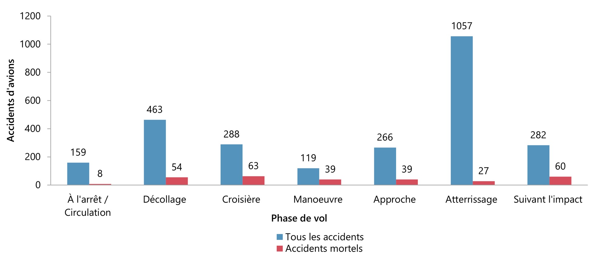 Tout au long du présent document, il y a des cas où la somme des catégories d’événement est plus élevée que le nombre total d’événements. Par exemple, si un événement unique met en cause un avion et un planeur, le nombre d’événements augmentera de 1 dans chaque catégorie d’aéronef, mais l’événement lui-même ne comptera qu’une fois dans le nombre total d’événements.