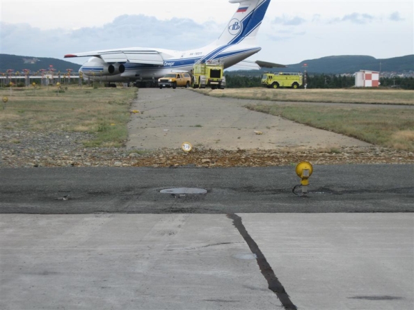 On 13 August 2012, a Volga-Dnepr Airlines Ilyushin IL-76TD-90VD aircraft (registration RA-76511, serial number 94-08), operating as flight VDA4118, departed Prestwick, Scotland, for St. John's International Airport, Newfoundland and Labrador, on a scheduled cargo flight with 10 crew members on board. An instrument landing system approach was carried out, and at 1612 Newfoundland Daylight Time, the aircraft touched down on Runway 11. Following touchdown, the crew was unable to stop the aircraft before it reached the end of the runway. The aircraft came to rest in the grass, the nose wheel approximately 640 feet beyond the end of the pavement. There were no injuries, and aircraft damage was limited to cuts and localized rubber melting on the main tires. The accident occurred in daylight hours. The runway overrun did not cause the emergency locator transmitter to activate.