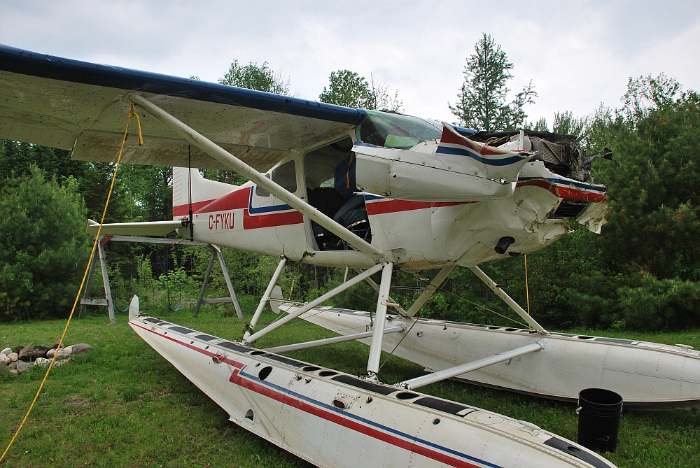 On 24 May 2014, privately-registered Cessna 185E (registration C-FYKU, serial number 185-1484), equipped with amphibious floats, departed the Guelph Airpark for a flight to Taylor Lake, Ontario. The pilot was the sole occupant of the aircraft. While conducting a glassy water landing, the floats dug into the water, the pilot lost control, and the aircraft cartwheeled and sank. The aircraft fuselage was damaged by impact forces, and the pilot's door could not be opened. The pilot survived the impact but was not able to escape the submerged aircraft and drowned. The aircraft was equipped with an emergency locator transmitter which activated; however, no signal was received due to the antenna being submerged. The accident occurred during hours of daylight at approximately 0740 Eastern Daylight Time.