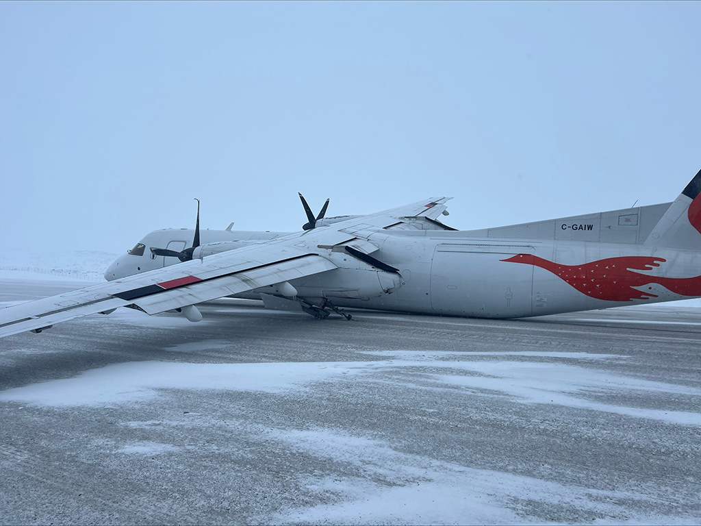When the aircraft touched down on the runway at Kangiqsujuaq, the lower part of its main left landing gear detached. The aircraft bounced and touched the ground again with only the front and main right landing gears.The crew eventually managed to regain directional control and bring the aircraft to a stop on the runway.