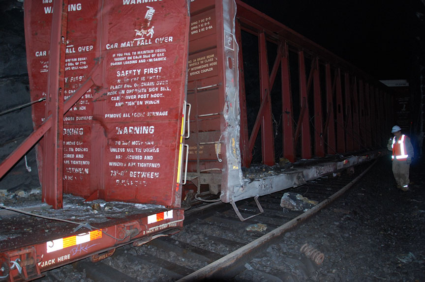 On , at approximately 1015 Mountain Standard Time, Canadian Pacific Railway Company freight train 401-02 was proceeding westward on the Laggan Subdivision when 15 empty cars derailed in the Upper Spiral Tunnel at Mile 128.9, near Partridge, British Columbia. There was no fire, and no dangerous goods were involved in the derailment. No one was injured.