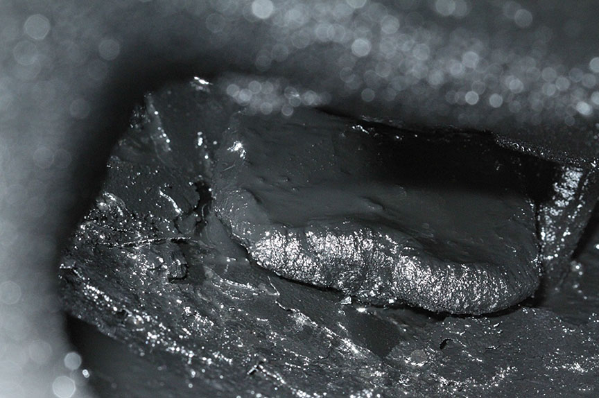 Records show that on 15 March 2013, MMA 5017’s engine was leaking oil at the R4/R5 cam bearing bolt. It is considered likely that the cam bearing mounting bolt had loosened at this location because the bearing was not seating properly in the previously damaged and deformed bearing bore. It is considered most probable that the R4/R5 cam bearing bolt was over-tightened in an effort to stop the leak. As a result, the bolt and threaded insert were pulled out of the cam bearing and the cam bearing separated in overstress. It is not known when the portion of the adjacent polymeric material repair broke off. The repair material failure was adhesive in nature close to the bearing bore indicating the bond between the block and the repair material failed (refer to Figure 36). Further outboard of the cam bearing the repair material failed in a cohesive manner, indicating it was unable to withstand the applied stress. This could have been a result of the oil pressure at start up following the repair or later when the mounting bolt was over-tightened.