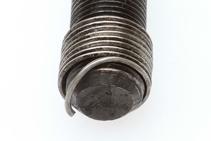 Examination of the camshaft section for PA R5 showed wear on the exhaust lobe and on the corresponding crosshead roller (Figure 14). The intake and fuel injector lobes and crosshead rollers had a normal appearance. Removal of the exhaust crossover pushrod from PA R5 showed that it was dry with fretting damage (Figures 15 and 16).