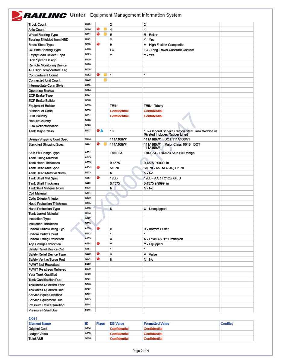 The train was also equipped with an end-of-train (EOT) sense and brake unit (SBU). The SBU was sent to the TSB Engineering Laboratory for examination (LP 132/2013). The records in the DataFlash were extracted and converted into Excel spreadsheets. The EOT SBU download data were provided for a comprehensive analysis of LER and SBU data together.