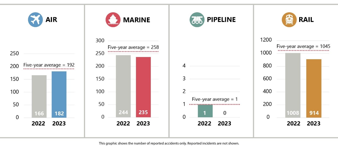 Building on the preliminary statistics published in February 2024, the Transportation Safety Board of Canada (TSB) released today its final annual statistical summaries from 2023 on transportation occurrences in the air, marine, pipeline, and rail transportation sectors.