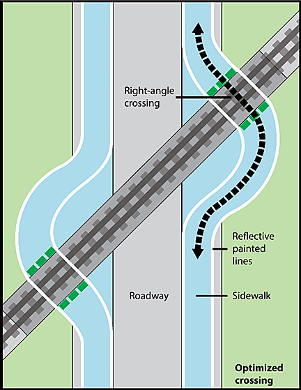 - Making the sidewalk perpendicular at the level crossing so that pedestrians who use wheelchairs will cross at a 90-degree angle.