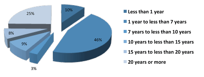 | 10 years to less than 15 years | 3 | 2 | 2 | 7 |
