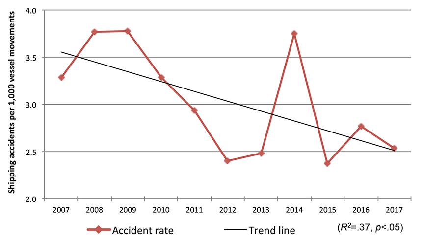 The 1,614 accidents reported in 2017 represented a 12% increase from the 1,437 reported in 2016. However, the 2017 total was 5% lower than the 10-year average of 1,694. There were 120 fatalities in 2017, up 2% from the 2016 total of 118, but 19% below the 10-year average of 149.