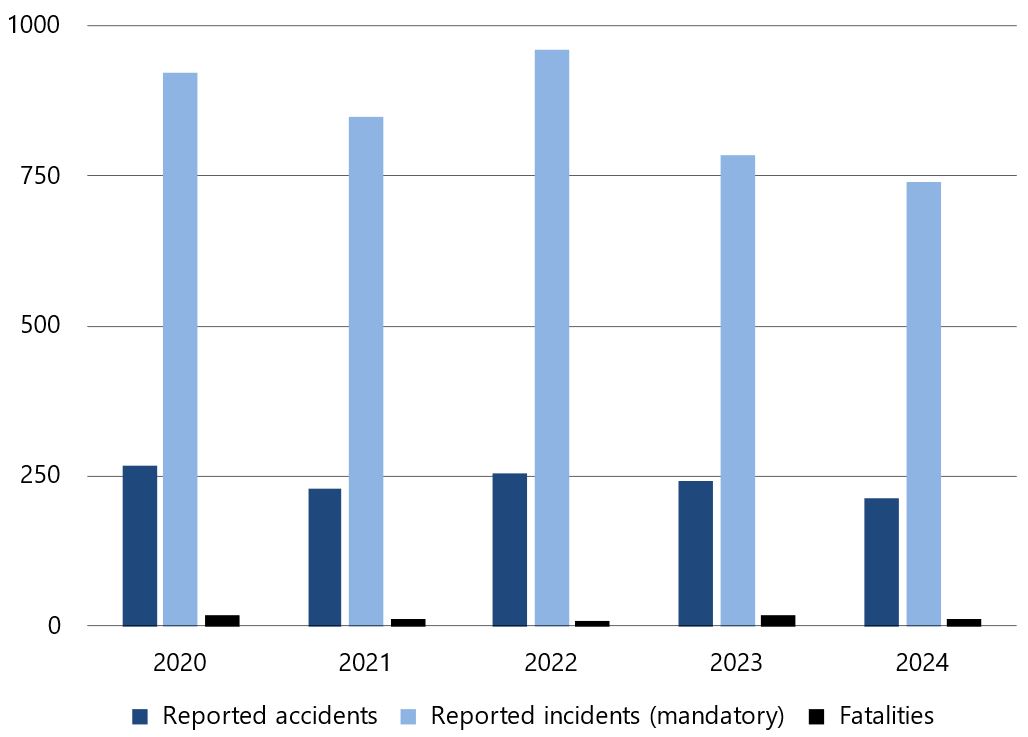 | Occurrences reported to the TSB | 2020 | 2021 | 2022 | 2023 | 2024 |