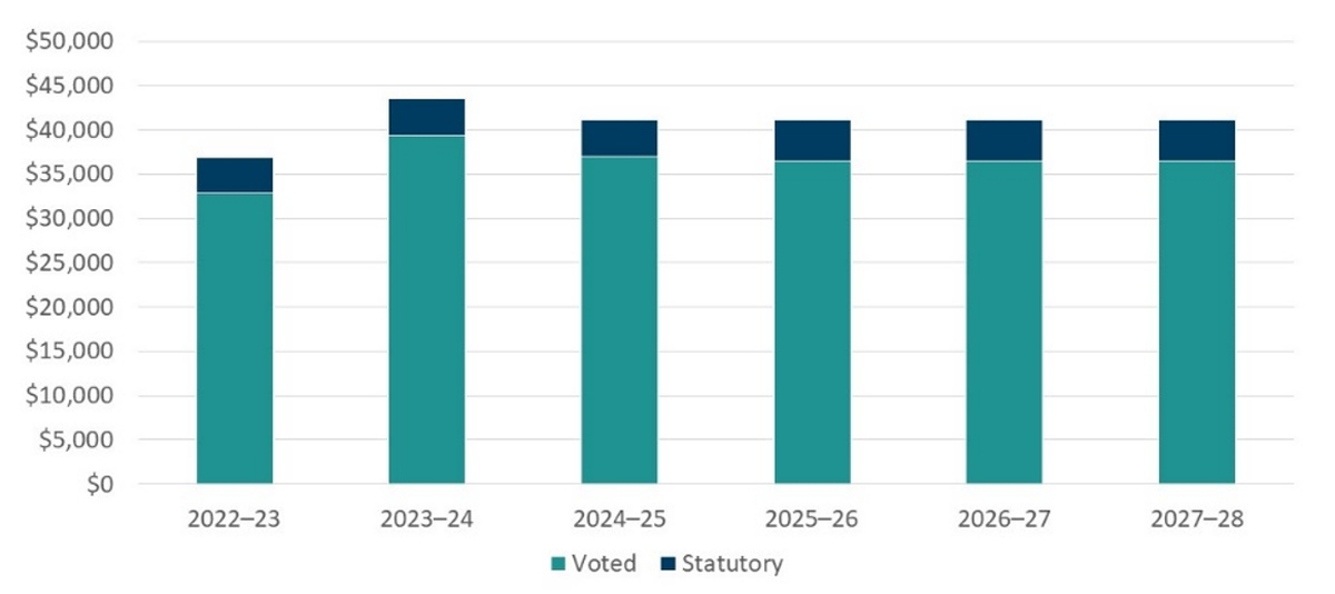 This section presents an overview of the department’s actual and planned human resources from 2022–23 to 2027–28.
