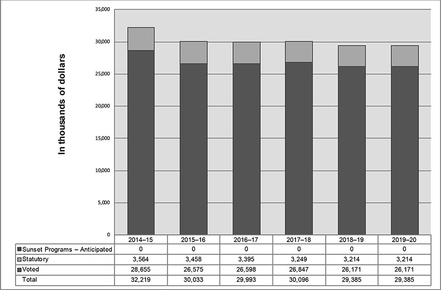 The 2016–17 Planned Results are based on estimates known at the time of the Report on Plans and Priorities (RPP). The difference between total expenses for 2016–17 Planned Results and 2016–17 Actual is mainly due to events not known during the RPP planning phase. Planned expenses for 2016-17 were estimated at $36.1 million while actual expenses are slightly lower at $35.4 million.