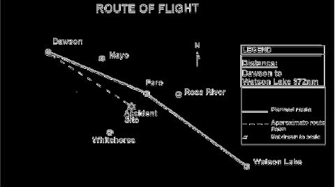 At the time of the accident, the air route between Dawson and Watson Lake was served by the following navigational aids: one non-directional beacon (NDB) at Dawson, one NDB at Mayo, one NDB at Faro, and two NDBs at Watson Lake. Watson Lake was also served by a very high frequency omni-directional range (VOR), and distance measuring equipment (DME). The NDBs and the VOR/DME were serviceable, and were used for navigation. The pilot also utilized the Whitehorse VOR/DME for en route navigation by flying a 75 nm arc north of Whitehorse.