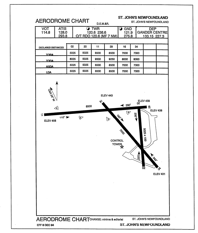 St. John's Airport is situated on the southeast coast of Newfoundland, at a reference point elevation of 461 feet above sea level (asl). The airport has three runways; runway 11/29, used by the occurrence flight, is 8,500 feet long by 200 feet wide.