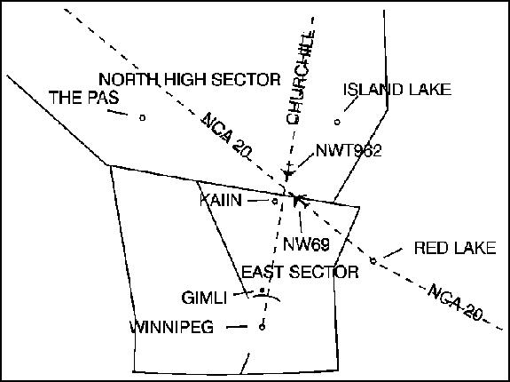 Air traffic control (ATC) in the area of the occurrence is provided by the Winnipeg Area Control Centre (ACC). The two flight paths crossed about 160 nm northeast of Winnipeg at 1456:48 CDT, about 6 nm north of the boundary between the North sector and the Winnipeg East (East) sector. At that point, the two aircraft had about 500 feet horizontal and 2,000 feet vertical separation. NW69 crossed from the East sector into the North sector, but the East controller had not yet handed off the flight to the North radar controller.