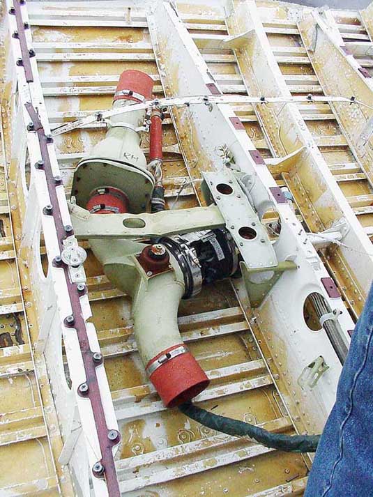The fan was attached to a section of the lower aft fuselage. It was identified by tag as Able Corporation PN 29480, SN 0008.