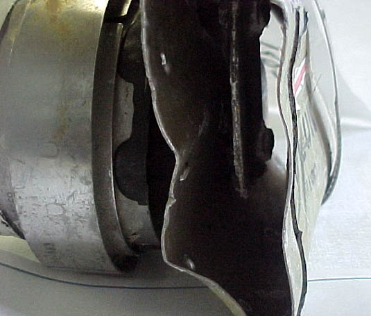 The impeller fairing was dented and the bearing housing, located below the fairing, was pulled away from the fan motor. The fan blade impeller and armature had been driven forward approximately 1/8 inch in relation to the outer housing.