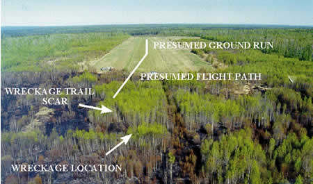 The crash initiated a forest fire that burned several hectares of non-merchantable, immature timber, much of it in the clearway zone of the aerodrome.