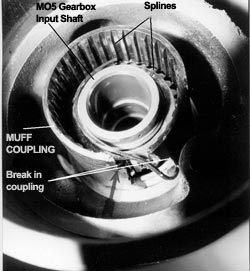 - The engine lost power when the muff coupling connecting the power turbine to the reduction gearbox failed.