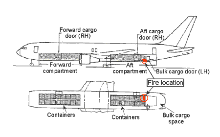 Additionally, Airworthiness Directive (AD) 90-NM-107-AD calls for the installation of a fire stop near the bottom of the sloping sidewall cargo compartment liner. This is to prevent a cargo compartment fire from migrating up behind the cargo liner. Air Canada's records indicate that this AD was completed by Trans Brazil on 29 June 1993, by internal Engineering Order (EO) MDA 767-25-151, which referenced Service Bulletin (SB) 767-25-0193.
