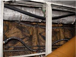 The Board is concerned that the FAA action is limited to Boeing 747 and 767 aircraft, because only these Boeing aircraft have open cargo floor areas. The FAA believes that heater ribbons do not need to be removed or replaced in closed-in areas, because such areas do not accumulate sufficient debris and contamination to pose a risk of a self-sustaining fire. The Board does not share this view. Both the TSB and the National Transportation Safety Board (NTSB) have previously issued safety communications concerning the fire hazard associated with the accumulation of lint, dust, and debris on wires. As well, both TC and the FAA have previously issued communications recognizing that the flammability of most materials can change if the materials are contaminated, and that contamination may be in the form of lint, dust, grease, etc., which can increase the material's susceptibility to ignition and flame propagation. Despite all of the action taken to date by the various agencies, the problem of contamination in closed-in areas still exists (see photos 6 and 7). As detailed in this report, dust and lint accumulation on wires has led to self-sustaining fires in closed-in areas, and the potential for such fires still exists. Consequently, the lack of FAA action concerning closed-in areas does not mitigate the safety deficiency in these areas.