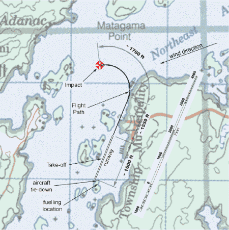 The aircraft, a Found Aircraft Canada Inc. FBA-2C1 Bush Hawk XP aircraft (registration C-GTUP, serial number 37) was being operated from a cleared ice-strip, approximately 1600 feet long and 50 feet wide, at 46°57.8'N, 080°01.3'W, on the frozen surface of Lake Temagami, 20 kilometres southwest of the town of Temagami, Ontario. On Monday, 07 April 2003, the pilot took off on a visual flight rules (VFR) flight to Parry Sound, Ontario; the take-off heading was approximately 010°M. The aircraft lifted off approximately half-way down the strip, climbed on runway heading to 200-300 feet above the lake surface, then commenced an approximately 30° bank turn to the left. After the aircraft had turned approximately 120°, the aircraft rolled about 90° to the left, the nose dropped, and the aircraft stalled and entered an incipient spin to the left. The spin stopped after about one turn, then the aircraft rotated briefly in the opposite direction and struck the frozen lake surface in a near-vertical attitude. The accident occurred at approximately 0910 eastern daylight time. The aircraft was destroyed and both occupants were fatally injured.