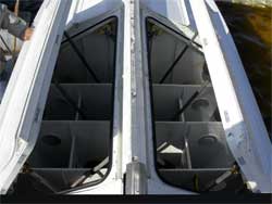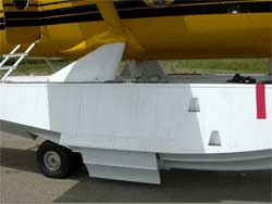 The water bombing system incorporates a dump lever that, in an emergency, allows the water to eject through the mechanical free-fall capability of the doors. A hydraulic hand pump retracts the doors if the aircraft's electric hydraulic pump fails.