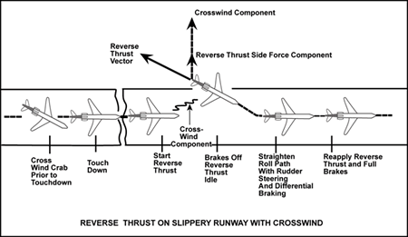 The Boeing 727 aircraft operating manual contains a section titled "Landing on Wet or Slippery Runways" (see Appendix A). In this section, crosswinds and the use of reverse thrust are discussed.
