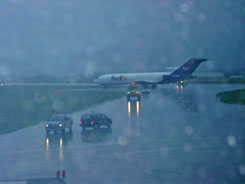 Photo 1 shows the aircraft moments after the landing. There was significant precipitation and standing water, which would have been conducive to aircraft hydroplaning. The Transport Canada Aeronautical Information Manual (AIM) notes that, when hydroplaning occurs, "it is known that a 10-knot, crosswind will drift an aircraft off the side of a 200-foot wide runway in approximately 7 seconds under hydroplaning conditions."