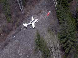At 2100, 11 minutes before the accident, the reported weather at Castlegar, British Columbia, 32 nm southeast of the accident site, was as follows: wind 360° T at 8 knots; visibility 15 statute miles (sm); broken clouds at 9000 feet; temperature 12°C; dew point 3°C; altimeter setting 30.16; remarks: 5 oktasFootnote 2 altocumulus, last observation, next at 0600, sea level pressure 1022.0 hectopascals.