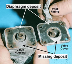 Crane SB 3402 issued 30 July 1993 applied to newly manufactured pumps assembled between October 1986 and December 1989 and to pumps that were overhauled since October 1986. This SB stated that the diaphragms used in the regulating valves of these pumps may not fully conform to the manufacturing process specifications. Fuel leakage past a failed diaphragm will exit the pump via the valve cover vent. If the vent is not plumbed to an overboard drain or holding tank, fuel may accumulate in an area where an ignition source exists (that is, turbocharger, exhaust components).
