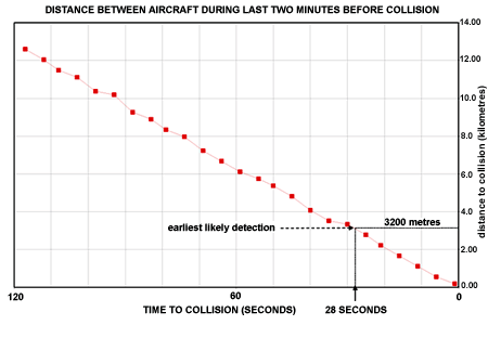 - A total of 12.5 seconds is required after first detection for pilot recognition and reaction to avert a collision.