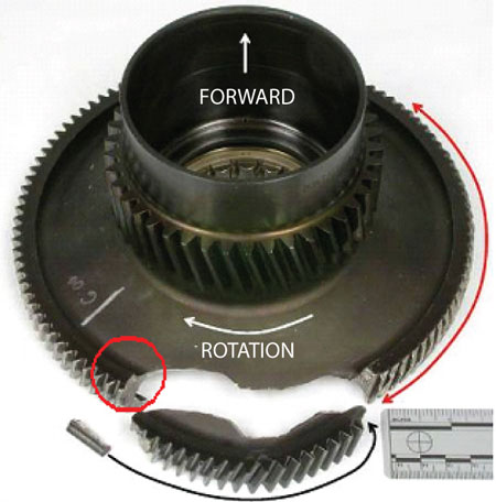 Rolls-Royce has reported that, for some operators, the MTBR of the torquemeter gear is 650 hours, and SDR data indicate that torquemeter gears have been rejected with as few as 154 hours. The longer a gear remains in service without being inspected, the greater the risk of failure, such as the occurrence torquemeter gear.