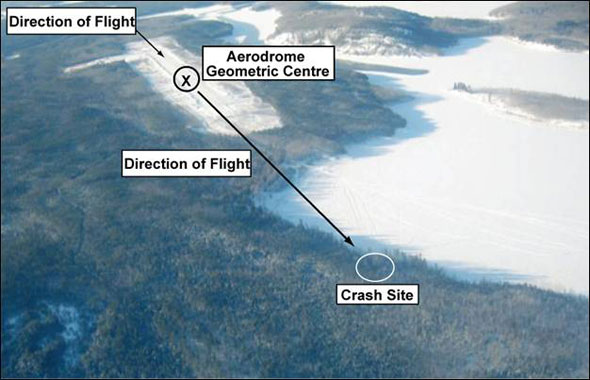 The aircraft departed La Ronge with 2600 pounds of fuel, at a take-off weight of about 10 833 pounds; the centre of gravity was within specified limits. En route fuel consumption was about 300 pounds and the landing weight was about 10 533 pounds.