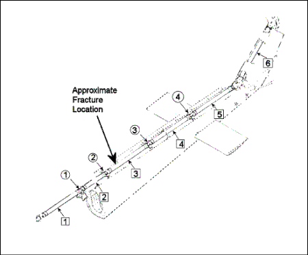 - The No. 3 tail rotor driveshaft was also subject to in-flight bending that likely exacerbated the heavy contact with the distorted tail boom.