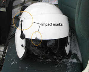 The training pilot was not wearing a helmetFootnote 5. He sustained severe facial and head injuries. The other pilot was wearing a helmet and did not incur head injuries; scarring on his helmet indicates contact with the helicopter structure during impact sequence (See Photo 1).