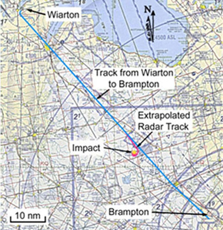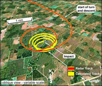 A mathematical analysis of the final moments of the flight path was carried out to develop a model of the trajectory from the point at which it disappeared below radar coverage until it struck the ground.