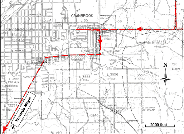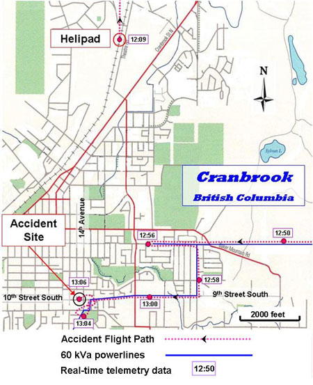 The flight profile was established by BC Hydro and had been pre-planned by the pilot and his two passengers, both BC Hydro power line technicians. The mission was to visually examine the 60 kVA (kilovolt-amperes) electrical power transmission lines that ran north from the Moyie/McGillivray area, through the city of Cranbrook, out to the east of the city, and then northwest (see Appendix A – Planned Power Line Inspection Route).