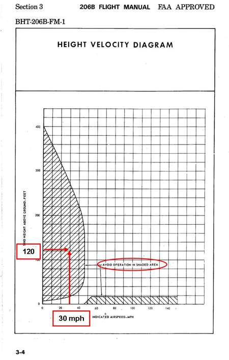 The RFM includes valuable information that identifies operational conditions posing high risk in the event of a loss of engine power. The HVD shows that low altitude and low airspeed combinations present a significant challenge to pilots in landing successfully from an event that requires an immediate landing, such as an engine malfunction. On the HVD, such higher risk zones are labeled "avoid" areas and represent the worst circumstances for recovery.