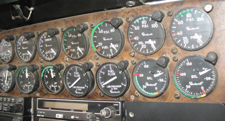 Recent King Air models have engine instrumentation mounted vertically (see Photo 2). With this layout, engine instrumentation is positioned in two vertical columns with the left engine instruments on the left and right engine instruments on the right. This layout makes identification of engine malfunction intuitive.