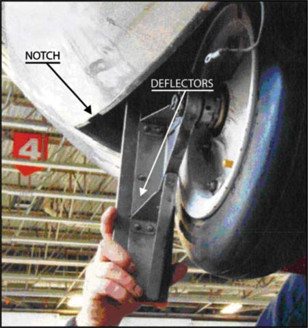 - The clearance between the gravel deflectors and the nose landing gear well structure is very narrow when compared to similar aircraft that are not equipped with gravel deflectors. Another oleo pneumatic shock absorber (oleo strut) compression could result in the same situation occurring again.