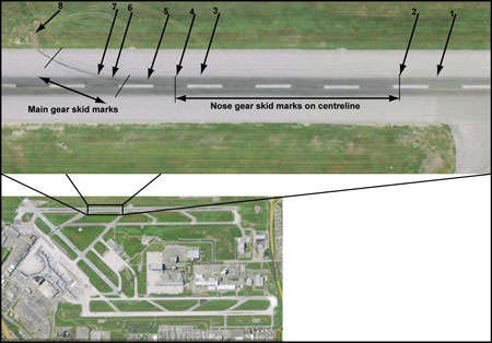 | 7 | 21:45:24 | 40 | Main gear skid marks appear on the runway |